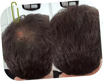 Dopo 2 settimane ho visto i risultati! Prima dell’applicazione ho esaminato attentamente la zona di diradamento e il cuoio capelluto... al 7°-8° giorno ho iniziato a notare piccoli capelli scuri... da lontano non si vedevano, ma ho riconosciuto chiaramente che stava crescendo nuovo capello! Chi avrebbe mai creduto che fosse falso il detto che la perdita dei capelli è irreversibile? Non ho riscontrato effetti negativi.